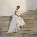 Stunning, Timeless, Elegant. Everything I was envisioing and wanted to at onamy Rehearsal dinner, and this dresspaired with the Gabriela Cape does just that.